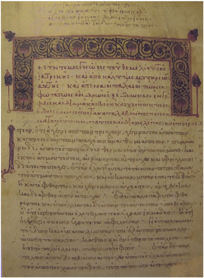 | 10 | See (Lucà 1993, pp. 84–85; Hutter 2022, pp. 725–27; Furlan 1980, p. 41; Canart and Lucà 2000, pp. 91–92). In fact, the Venice manuscript was copied by the same scribe attending to ff. 1–95 in the Vatican Urbinas. |