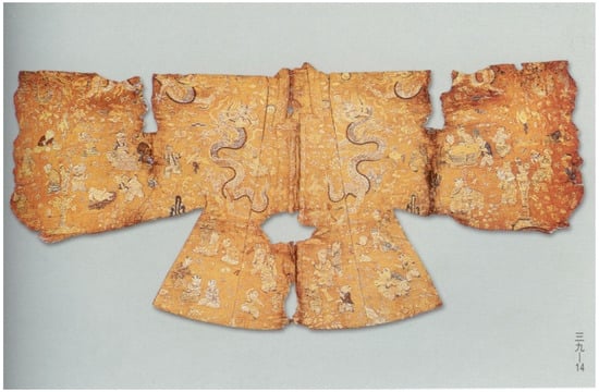 This dilemma might be resolved if we consider another viewer of these jackets: Empress Xiaojing herself. Historian Hui-Han Jin has argued in her dissertation that the Ming Dynasty witnessed a change in the understanding of the nature of the soul and the religious function of the tomb. More specifically, in Ming burials across social strata, an emphasis on emotional attachment to the deceased and an attempt to keep a connection with the beloved buried underground can be observed through funerary objects, tomb layouts, and ritual codes (Jin 2017). These sentiments were repeatedly articulated by the founding emperor of the Ming Dynasty (Hongwu 洪武 Emperor, r. 1368–1398), who attributed his success to the blessings of his departed peasant parents, and expressed his gratitude through building them a lavish second burial at an auspicious site. In doing so, the Hongwu Emperor also hoped to maintain a blissful connection with his parents in the other world and to extend their protection to his future descendants (Jin 2017, pp. 97–107). Similarly, for Emperors Guangzong and Xizong, the luxurious baizi jackets decorated with loving scenes between motherly figures and children might have acted as a token for the young emperors to express their feelings towards their deceased mother/grandmother, and to sustain their connections with her; hopefully, upon receiving these gifts inscribed with specific messages, Xiaojing would in turn bestow her blessings to help her offspring through challenging times and to ensure the prosperity of the imperial family and the entire empire.