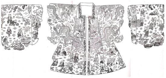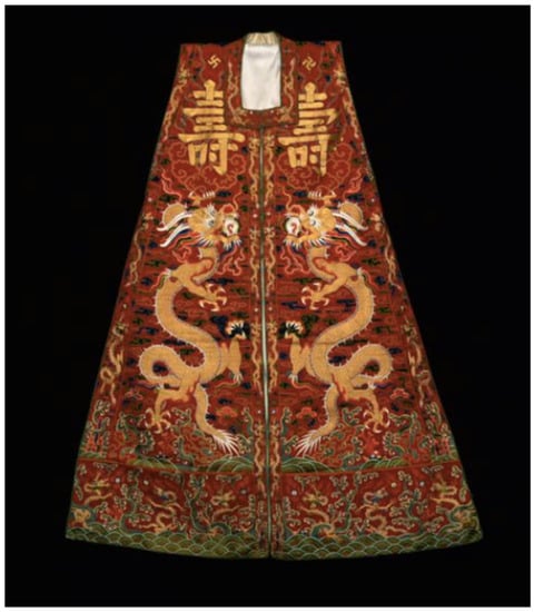 - Han, Shuai. 2021. Ming Dingling Jinlong baizi yi yingxi wen shidu 明定陵金龍百子衣嬰戲紋釋讀 (Interpretation of Children-at-play Painting of the Dress with Embroidery of Gold Dragon and One Hundred Unearthed in Coffin of Empress Mausoleum of Ming Dynasty). Art and Design 藝術與設計 2021: 124–26. [Google Scholar]