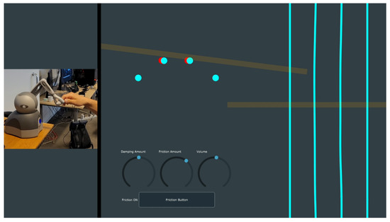 Snapshot from the demo video Onofrei (2022b) of the digital music instrument showing both the software application window as well as the control via the haptic device.