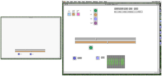 The graphical, object-based programming language MaxMSP was used. MaxMSP is a programme originally developed for musical purposes and has therefore a suitable real time precision (the internal scheduler works at 1 ms) and many built-in features for the generation of sound, images, video clips, and interface widgets. It has been used and proved useful and valid as a tool in several psychometric and HCI-related experiments (Vertegaal 1998, p. 41; Bongers 2002; de Jong and Van der Veer 2022). Experiments can be set up and modified very quickly.