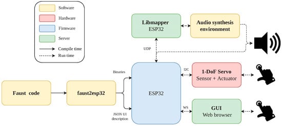 - Berdahl, Edgar, and Alexandros Kontogeorgakopoulos. 2013. The FireFader: Simple, Open-Source, and Reconfigurable Haptic Force Feedback for Musicians. Computer Music Journal 37: 23–34. [Google Scholar] [CrossRef]
