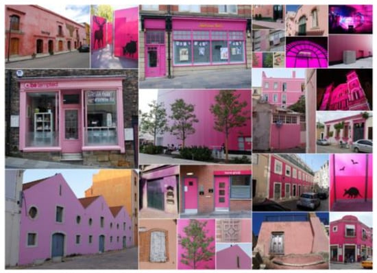 - Barragan, Bianca. 2017. Three Mid-City Houses Painted Hot Pink by Local Architecture Firm. Curbed. Los Angeles. Available online: https://la.curbed.com/2017/6/12/15782818/mid-city-pink-houses-m-rad-public-art (accessed on 15 May 2023).
