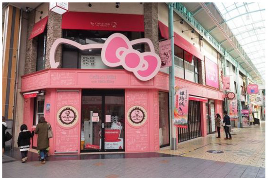 In 2018, the first Hello Kitty Grand Café was opened in Irvine, CA, US, and the following year another opened also in Las Vegas, NV, USA (Hello Kitty Grand Café 2023). Kitty enjoys exceptional popularity in Japan and Korea, where in many cities there are stationary cafes dedicated to the fans of a friendly cat, such as Café de Miki with Hello Kitty in Himeji, Japan (Figure 17).