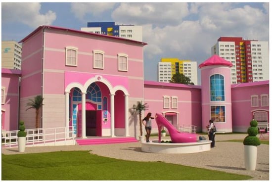 The building that caused the most controversy and became the cause of feminist demonstrations was The Barbie Dreamhouse Experience, an interactive exhibit accessible for four months in 2013. It was designed as a joint venture between Austria’s EMS Entertainment and Mattel in Berlin, Germany. The building was modeled on the Barbie-doll Dreamhouse, and one hundred gallons of pink paint were used to paint it. Feminist groups opposed the attraction, saying the Barbie doll and pink color stereotype women, reducing them solely to external appearance. Despite the protests, the installation enjoyed great interest and was visited by about 3000 people daily (Barbie The Dreamhouse Experience 2013; Engel 2013) (Figure 18).