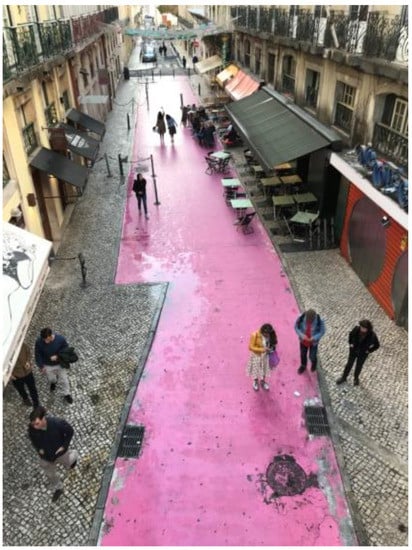 - Pink Street/Jose Adrião Arquitectos. 2013. ArchDaily. Available online: https://www.archdaily.com/447832/pink-street-jose-adriao-arquitectos (accessed on 8 May 2023).