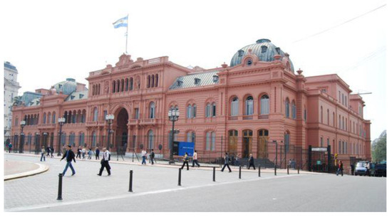 - Casa Rosada. 2019. History of the Argentine Government House (Casa Rosada). Available online: https://www.casarosada.gob.ar/international/argentine-government-house/history (accessed on 20 May 2023).