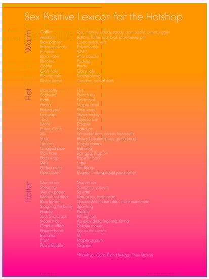 Sex Positive Lexicon Poster, Karen Donnellan and Suzanne Peck, 2020. Image reproduced with permission from the artists.
