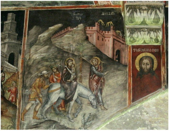 - Millet, Gabriel. 1916. Recherches sur l’iconographie de l’Évangile aux XIVe, XVe et XVIe siècles d’après les Monuments de Mistra, de la Macédoine et du Mont-Athos. Paris: Fontemoing et Cie. [Google Scholar]