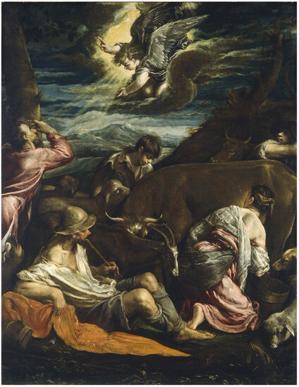 Jacopo Bassano, The Annunciation to the Shepherds (detail), c. 1558, canvas, 106 × 83 cm. National Gallery of Art, Washington, Samuel H. Kress Collection. Photo: Public domain (Courtesy of the National Gallery of Art, Washington).