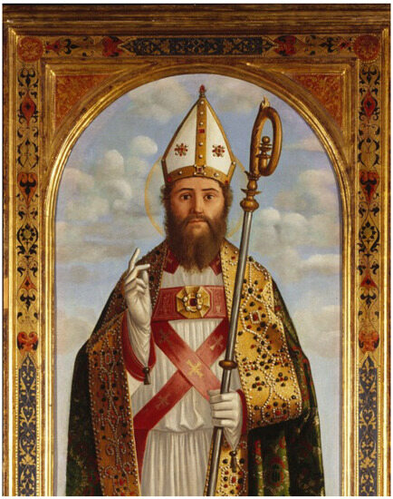 Carpaccio, Saint Augustine (detail), c. 1507, panel, 113.5 × 39.5 cm. Philbrook Art Museum, Tulsa, Oklahoma—Samuel H. Kress Foundation, New York. Photo: Public domain (Courtesy of the Samuel H. Kress Foundation).