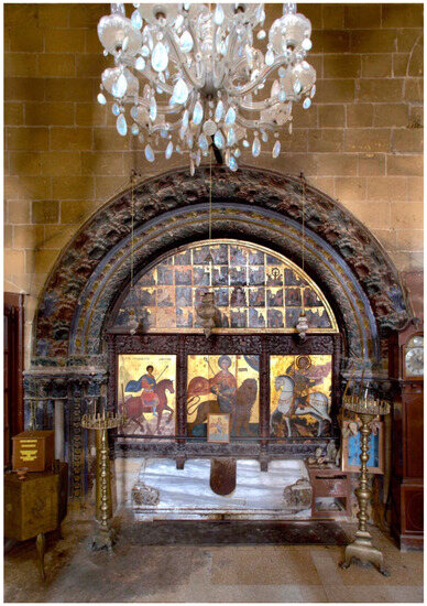 - Olympios, Michalis. 2014. Stripped from the Altar, Recycled, Forgotten: The Altarpiece in Lusignan Cyprus. Gesta 53: 47–72. [Google Scholar] [CrossRef]