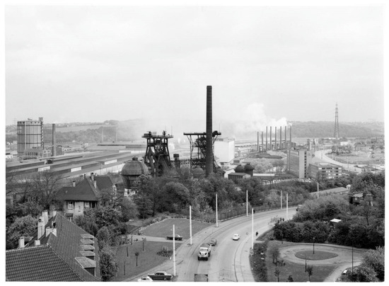 The literal text reads, “With your own phantasy you can very good sensing a liveliness feeling of working life on the Henrichshütte. Particularly of the very many original recorded votes of former workers, you can hear over loudspeakers, one obtains a very intense feeling of work”. https://www.joergnitzsche.de/en/industrial-museum-henrichshuette.html (accessed on 5 March 2023).