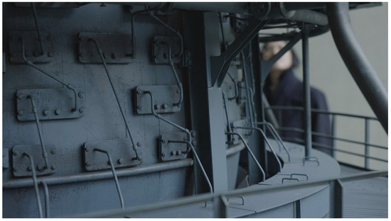 In the subsequent October interview, Serra mentioned that an independent German camera team was hired to document the making of the steel sculpture. He noted that the crew “shot beautiful images of the mill, and then the workers appeared, it was in such a way that they seemed heroic. They looked like what the cameraman wanted them to look like—heroes; big, happy German workmen” (Michelson et al. 1979). The interview ends with Serra himself questioning “to what degree are we involved with making propaganda? And how conscious are we of it?” (Michelson et al. 1979). According to an exhibition catalogue produced by Kunstmuseum Basel in conjunction with the exhibition Richard Serra, Films and Videotapes, the artist moves “towards reality with the aim not of portraying this reality but of shaping it”.15 As underscored in Steelmill/Stahlwerk, Serra’s initial nostalgic assumptions about the lives and working conditions of factory workers were challenged by realities he faced during his time spent in the factory. In a similar vein, Boym writes, “(n)ostalgia… is an abdication of personal responsibility, a guilt-free homecoming, an ethical and aesthetic failure” (Boym 2001).16 Keenly aware of the museum’s romanticization of its own history (and perhaps even its failures), Su’s observational lens is an important counterpoint to Richard Serra’s. In our conversation, Su noted an important phenomenon as she herself moved through the factory-turned-museum—silence (Figure 8).