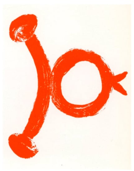 Picasso’s partner, the painter Françoise Gilot, suggested a solution to these challenges. Recalling medieval manuscripts she had studied in a library in Montpellier, with “large ornamental initial letters in red, beautifully refined in their abstract form”, she described them to Picasso and “suggested he pattern his illustrations after them”. After making a handful of studies, including Arabesque (Figure 1), Picasso set the project aside. It was revived in 1948, when a rare-book dealer offered him a manuscript in which “the body of the text was written in the usual black Gothic script but the initials were very large ornamental letters painted in red and abstract in form”, showing “a definite Arabic influence”. Picasso bought the manuscript and soon thereafter returned to work on the illustrations for Le Chant des morts (Gilot and Lake 1964, p. 193).