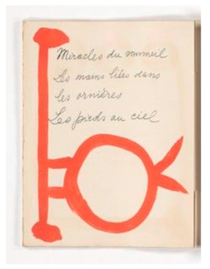Similarly, if the linked barbells at the end of “Je ne pense plus qu’à la nuit” are read as a creature with four legs, one extended, the image corresponds to nothing in the text. Picasso, a famously acute reader of poetry, would not have inserted such incongruous images into Reverdy’s text.