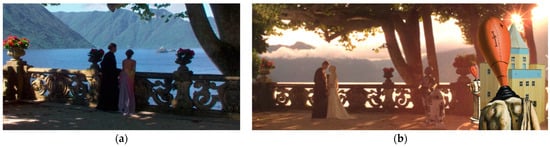 The Eden from Star Wars (Figure 1) can be envisioned as a composition of various elements. While the author of the film used the panorama of Bellagio (a), a small Italian town, as the basis for the image, it is not a mere replica of the panorama. The image’s foreground prominently features the balustrade of the famous Bellagio villas in the town. With the help of technology, the author introduced new characters and manipulated the image to create the Eden from Star Wars.