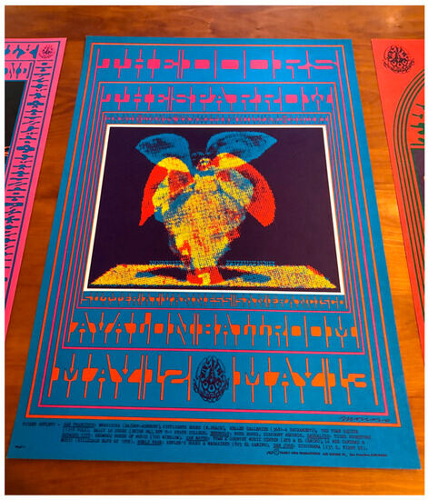 D’Alessandro and Terry 2017). The pieces shown in display cases and on the walls helped unfurl the hidden layers of experimentation and skill represented by each poster. Lithographic plates, acetate sheets, film negatives, and other tools of the trade paired with didactics demystified commonly held misconceptions—especially the misguided notion that San Francisco’s poster artists relied on Day-Glo ink for their vivid compositions.