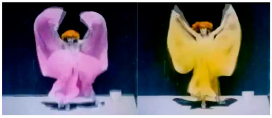 Figure 2), for those familiar with the later version of the film, the resemblance is impossible to miss. Along with the enlargement of the halftone dots, color serves as the key mechanism to create visual clarity amidst Whitford’s fanciful dancing, which would otherwise be reduced to an indeterminate outline, akin to the aftermath of a snow angel in fresh snow.