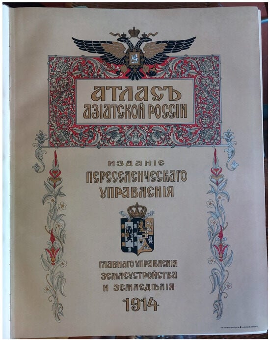 Atlas Aziatskoj Rossii (Atlas of Asiatic Russia. A publication of the Resettlement Department of the Chief Directorate of Land Management and Agriculture, A. F. Marx, at the behest of the Department of Resettlement of the Main Directorate of Land Management and Agriculture, St. Petersburg, 1914, Wolfsoniana—Palazzo Ducale Fondazione per la Cultura—Genova).