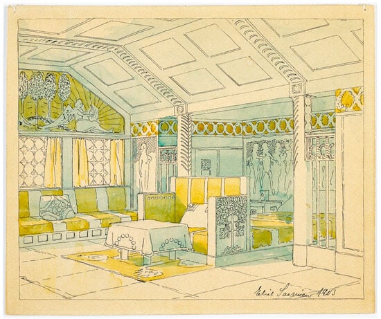 As a record of the cultural transitions between Russia and the colonies is a watercolor and ink drawing for the Bedroom in the Villa Bobrinsky near to Moscow (Figure 3), designed in 1903 by Eliel Saarinen (1873–1950), father of the famous Finnish architect Eero Saarinen and, in that moment, Russian subject. It is an outstanding example of the importance of the “Northen” National Romanticism and Art Nouveau on Russian art of the early 20th c. (Lisovsky 2016), a kind of inverted influence, when the colonies influenced the center.