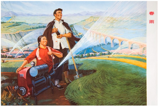 During the Mao period, but especially during the Cultural Revolution, art production was under the control of the state and very much reflected the orthodox party line. Drawing on the writings of Karl Marx, Mao believed that human nature was determined by the process of changing the natural world to meet human needs, as well as labor relations, mostly focusing on workers, peasants, and soldiers, whom Mao anointed as the “heroes” of the revolution. The most common subjects of propaganda paintings and posters were these “heroes” laboring, studying, and rallying for the communist cause, their bodies rippling with muscles, cheeks rosy, and smiles huge (Figure 2). In such depictions, their value as humans was intrinsically tied to their relations with production and class identity. Such depictions fulfill Marx’s concept of a “total man” because the subjects are not alienated under capitalism. For Marx, labor under capitalism “alienates from man his own body, external nature, his mental life and his human life” (Marx 1992, p. 120). In paintings such as these, the relationship between the human body and his/her surroundings provide a microcosm for what Mao envisioned as the relationship between art and society. Both the laboring body and art served as tools to achieve the goals of the Communist Party.