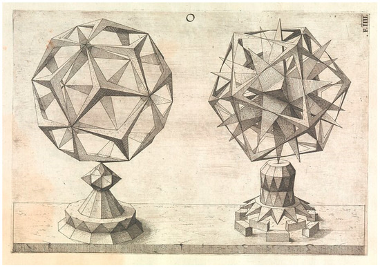 Beyond his conceptualization of pictorial space, the specific geometries of Geometries stage a meta-argument into new spatial materiality as they are Euclidean solids staged in non-Euclidean space. On the one hand, Stella has always demonstrated an interest in new materials throughout his career by incorporating fiberglass, carbon fiber, and plastics made through prototyping technology and synthetic resins into his works.23 On the other hand, his formal inspirations have a historic basis in early modern explorations of perspectival geometry and their (in)ability to be translated into different materials. We might compare Stella’s colliding and exploding forms to sixteenth-century goldsmith Wenzel Jamnitzer’s exploration of Platonic solids (Figure 6) that were then subsequently realized in new materials such as lathe-turned ivory or innovations in metalworking. Stella has additionally noted that his works are not only about “computing the faces of polygons” but also speak to the symbiotic relationship between material and form, asserting in 2012 that his adoption of improved plastic material has lent themselves to the creation of new complicated shapes for the Scarlatti K-series (Stella et al. 2017, p. 16; 2012, p. 24). The emphasis on Platonic solids central to Geometries preemptively positions the forms toward reproductions either as 3D printed forms in physical space or as digitally encoded materials suspended in virtual space.