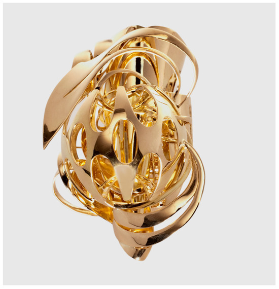 Frank Stella, Ring, 2008. 19 kt yellow gold ring, 4.4 × 8.9 × 5.1 cm. Edition of 10. Signed and numbered. Photo: Deniz Guzel, Courtesy of Elisabetta Cipriani.