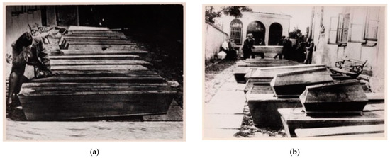 (a,b) Coffins with the corpses of the victims of the Kielce Pogrom, St. Alexander, Kielce, 1946. Courtesy of the Emanuel Ringelblum Jewish Historical Institute in Warsaw.