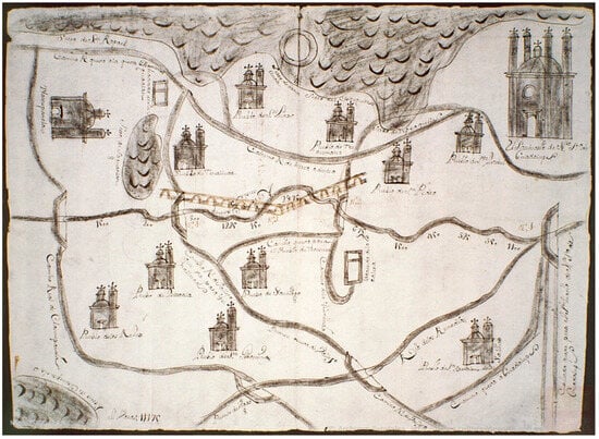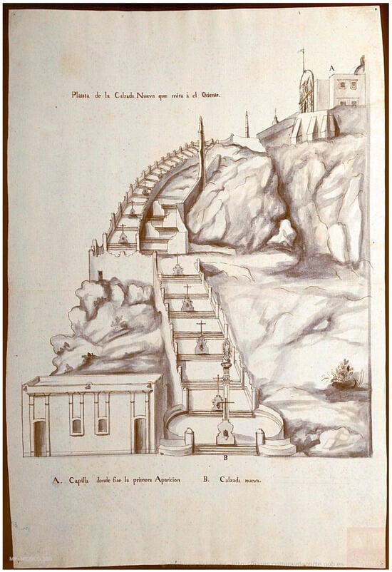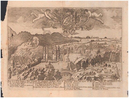 - Urquijo Torres, Sergio. 2009. Vistas de la Villa: El Cerro y el santuario. La perspectiva de paisaje. In Tres siglos en el Tepeyac. El antiguo templo y morada de Guadalupe (1709–2009). Mexico City: Museo de la Basílica de Guadalupe, pp. 65–97. [Google Scholar]