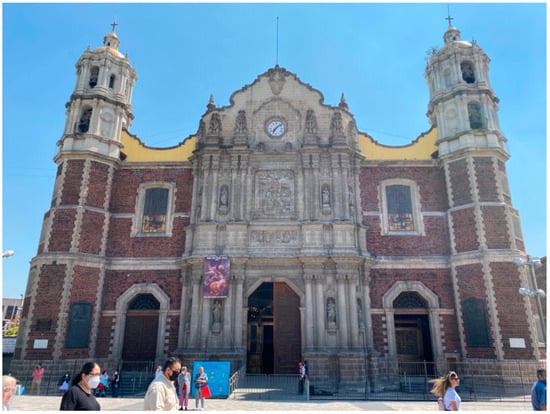 - La redacción de El Economista. 2021. Gobierno de CDMX Prevé La Visita de Más de 4 Millones de Peregrinos a La Basílica de Guadalupe. El Economista. November 11. Available online: https://www.eleconomista.com.mx/estados/Gobierno-de-CDMX-preve-la-visita-de-mas-de-4-millones-de-peregrinos-a-la-Basilica-de-Guadalupe-20211211-0025.html (accessed on 1 June 2023).