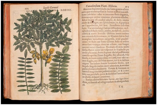 “Acacia Americana Robini” from Jacques-Philippe Cornut’s Canadensium plantarum (Paris, 1635). Oak Spring Garden Foundation, Upperville, VA.