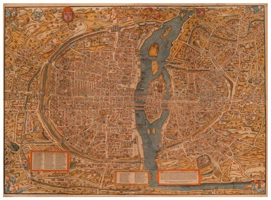 Olivier Truchet and Germain Hoyau, La ville, cité et Université de Paris, c. 1552-3, woodcut. Universitätsbibliothek Basel AA 124.