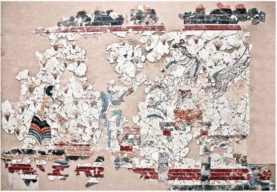 - Vlachopoulos, Andreas G. 2021. Divine Acolytes: The Animals and Their Symbolism in the Xeste 3 Wall-Paintings. In ZOIA: Animal-Human Interactions in the Aegean Middle and Late Bronze Age. Proceedings of the 18th International Aegean Conference, Originally to be Held at the Program in Aegean Scripts and Prehistory, in the Departments of Classics, The University of Texas at Austin, Austin, TX, USA, 28–31 May 2020. Edited by Robert Laffineur and Tom G. Palaima. Austin: University of Texas, pp. 249–80. [Google Scholar]