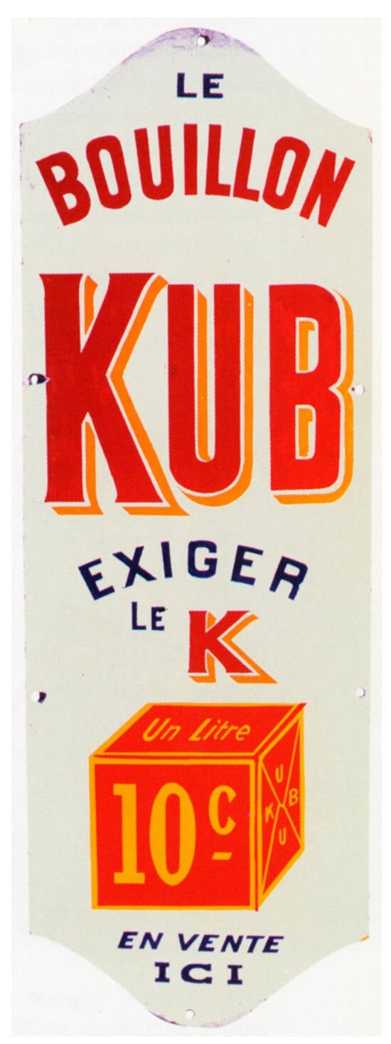 Enamel advertising sign for the launch of Bouillon Kub in France in 1908.