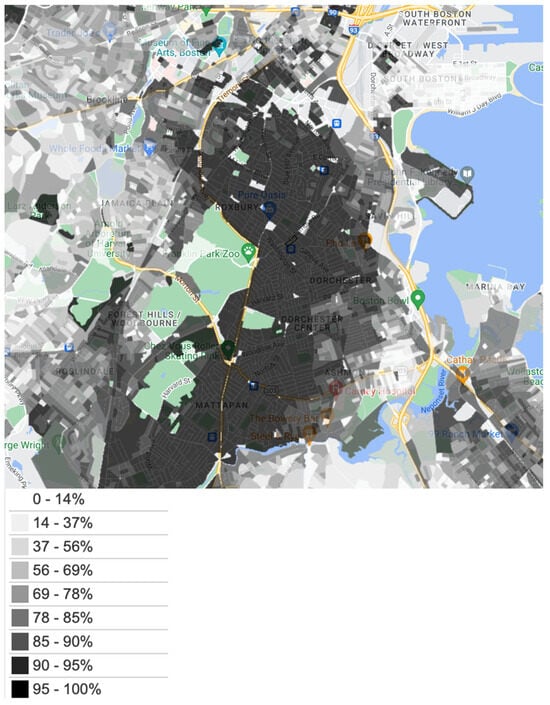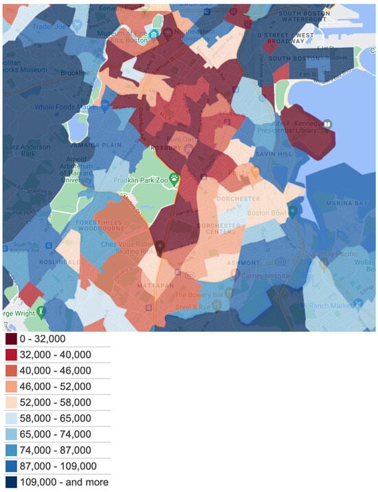 Boston Planning and Development Agency 2022). It lists income levels for different household sizes as a percentage of the area median income, and then housing that’s been set aside as “affordable” is only available to people under a certain percentage of that area median. Everything currently available, according to the website, is listed at 80%, so a family of three with an income of up to