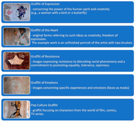 - Śliwerski, Bogusław. 2021. Pedagogy around graffiti. Studia Z Teorii Wychowania XII: 51–63. [Google Scholar] [CrossRef]
