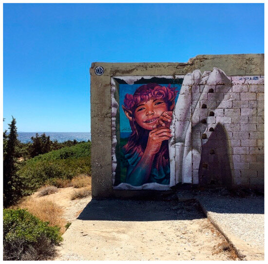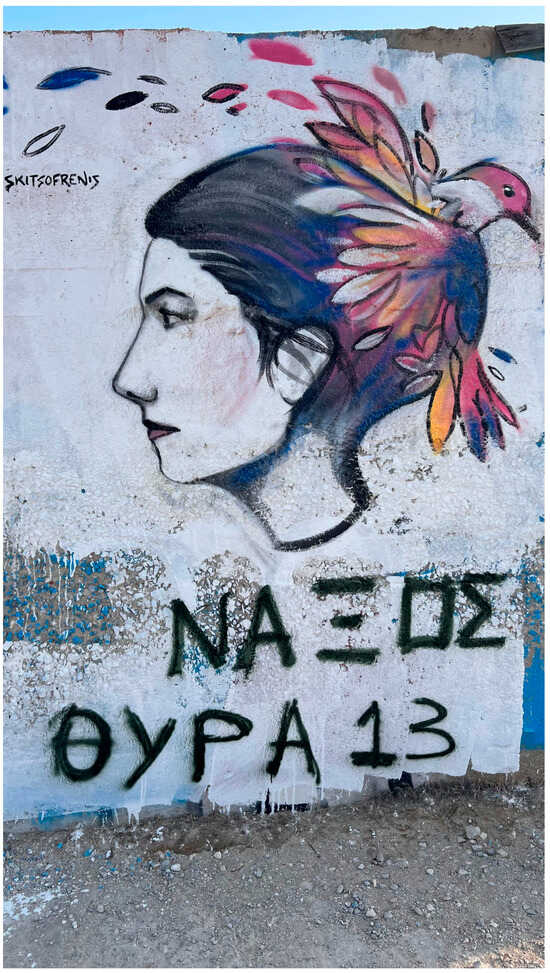 - Giakouvakis, Giorgios, MDE Konstantina, and Konstantinou Maria. 2020. Report: Street Art Naxos—An Overview of the Works in the “Ruined Hotel of Naxos”. Available online: https://www.crimetimes.gr/report-street-art-naxos-mia-episkopisi-twn-ergwn-sto-ere/ (accessed on 10 November 2023).