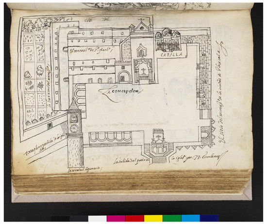 As I will show, the parallel colonial orders Mendieta envisioned in his letters derived in part from the social relations imposed by the arrangement of the monastery’s built spaces. By the time he wrote the account, Mendieta had twice served as the father guardian of the Tlaxcala monastery, in 1585 and 1591 (Gibson 1952, pp. 210–13). There he traversed the same passageways as Fray Miguel and proposed radical reforms to physically isolate the Franciscans from the Indigenous people (García Icazbalceta 1892, vol. 4, pp. 234–43; Turley 2016, pp. 140–52). For Franciscans, the monastery was a microcosm of an idealized Christian society, where physical barriers were imagined to articulate religious and social barriers beyond the cloistered walls. The representation of the Tlaxcala monastery in Mendieta’s account, then, offers vital insight into the representation of Indigenous labor in monastic spaces, revealing an understudied aspect of the origins of emergent racialized systems of social and religious differentiation in colonial Mexico.