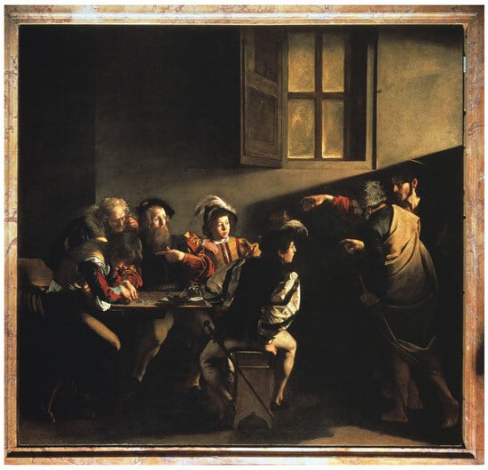 - Muraoka, Anne H. 2021. A Question of Faith: “Making Strange” in Caravaggio’s Calling of Saint Matthew. In Space, Image, and Reform in Early Modern Art. The Influence of Marcia Hall. Edited by Arthur J. DiFuria and Ian Verstegen. Studies in Medieval and Early Modern Culture. Berlin and Boston: Walter de Gruyter GmbH, vol. 77, pp. 311–39. [Google Scholar]