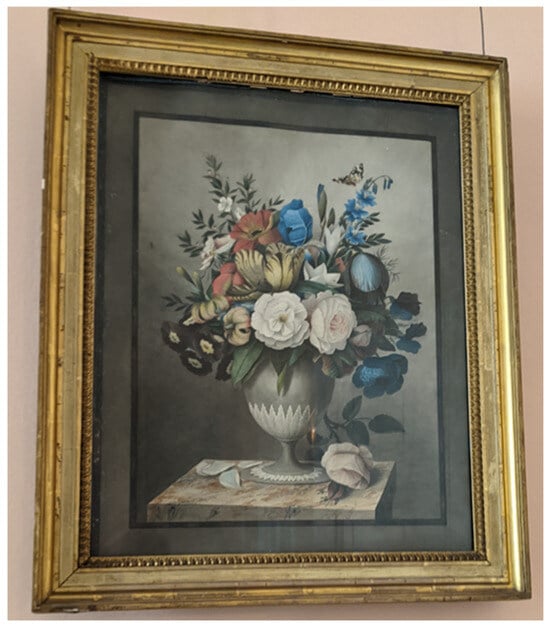 Since the flowers depicted in the watercolors at Powderham appear to have been from the Earl’s own gardens, they relate to the idea that objects in a collection represent the biography and interest of their owner. Freya Gowrley has explored this idea in her study of the Courtenays’ neighbors, Jane and Mary Parminter, who lived at A la Ronde in Exmouth. The Parminters collected items from the surrounding Devonshire countryside, such as shells, which they then displayed alongside objects in their house brought back from their Grand Tour. Gowrley argues that A la Ronde was a domestic space formed from “the interconnecting and subjective identities of its inhabitants, in which they are simultaneously women, family members, travellers and residents of Devon” (Gowrley 2022, p. 118). The floral still lifes at Powderham likewise speak of the Earl’s identity. They denote him to be a collector of plants, an artist who records his cultivations, and a member of a family which pursues art to express their interests.