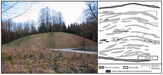 Burial mounds may be one of the most visible and yet complex and enigmatic forms of material culture found in archaeological records. While, ostensibly, burial mounds are constructed to memorialize, if not monumentalize, the dead, the overall sizes and locations of the mounds are usually understood as directly or indirectly related to “prevailing ideologies” as their material expression both singly and as groups or cemeteries (Arnold 2002; Ballmer 2018, p. 100; Parker Pearson 2005). For instance, in many, if not most, studies on burial mounds, larger monuments are seen to communicate elevated status via communal effort in comparison with smaller mounds (Arnold 1995, 2002; Ballmer 2018; Barfield 2020; Brown 1981, 1995; Branigan 1998; Buikstra and Charles 1999; Hanks 2002; Koryakova 1996; Morris 1987, 1991, 1992; Parker Pearson 2005; Parzinger 2017; Rolle 1989, 2011; Saxe 1970; Steinhaus et al. 2018; Tainter 1975; Voutsaki 1998). Yet, this tenuous connection to ideology is either too often taken for granted or overly reductionist in principle (and sometimes both). By this, I mean that the simplistic formula—the larger the burial mound, the more important the deceased—leads to a reliance on, which ultimately perpetuates, monolithic interpretive frameworks that omit a fuller range of experiences of the mounds themselves. Indeed, Lynne Goldstein (1981, p. 56) stated that the result of such frameworks is the pigeon-holing of the (full) meaningfulness of mortuary practices and their studies, followed soon after by Ian Morris’s (1991) testing of Saxe’s Hypothesis 8 and Goldstein’s expansion of it, finding that it did not fit in every social scenario.