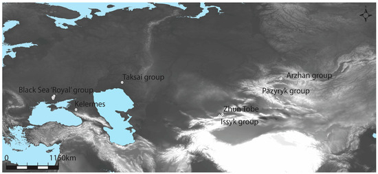 - Parzinger, Hermann. 2017. Burial Mounds of Scythian Elites in the Eurasian Steppe: New Discoveries. Journal of the British Academy 5: 331–55. [Google Scholar] [CrossRef]