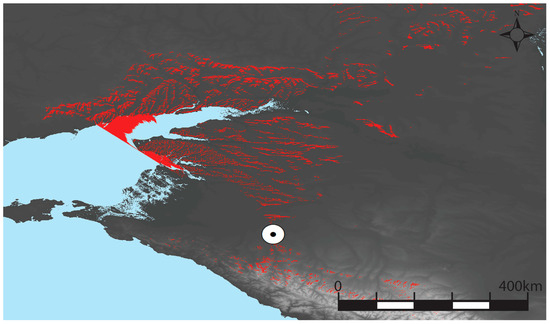 It probably makes a great deal of sense to start with one of the largest mounds in the Scythian world, and that is Aleksandropol. The visibility associated with Aleksandropol is nearly unprecedented as it offers a commanding view of the Black Sea region. The mound itself, which would have been some 22–25 m high, would also have been visible for some distance, representing a much greater field of visual engagement with the mound. It would have towered over its neighboring mounds in the lower Dnipro region and was likely related to a large Scythian settlement. Even though Aleksandropol’s viewshed is nearly unprecedented in size, Chertomlyk, another of the famous royal Scythian mounds, has a nearly identical viewshed in terms of scale and the field of visual engagement centered on that location. In each of these two cases, both overlook the entirety of the immediate Black Sea region and some of its adjacent areas (Figure 9).