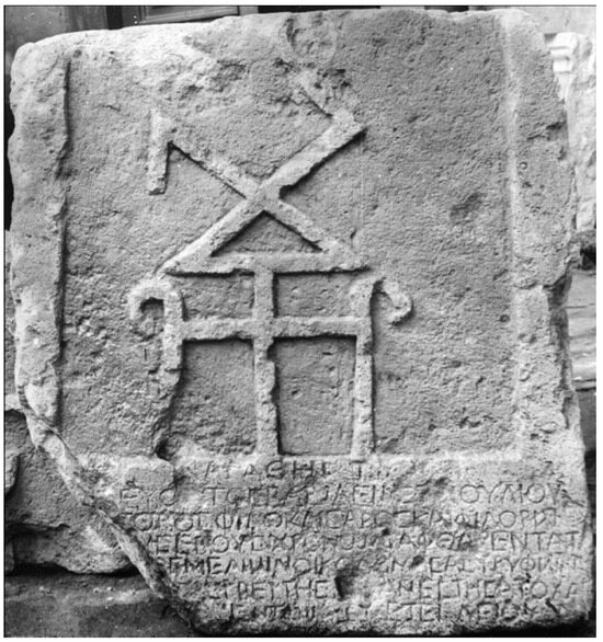 Building inscription with royal tamga of King Tiberius Iulius Sauromates II, Hermonassa, 208 CE. CIRB-album 1053.