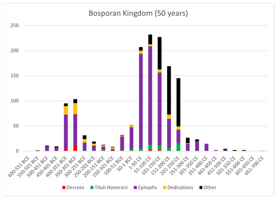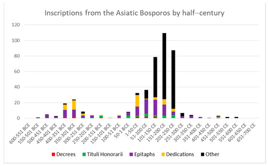 - Halamus, Michał. 2020. The epigraphic curve in the Northern Black Sea region: A case study from Chersonesos and the Bosporan Kingdom. In Epigraphic Culture in the Eastern Mediterranean in Antiquity. Edited by Krzysztof Nawotka. New York: Routledge, pp. 102–17. [Google Scholar]