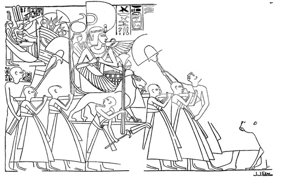 Transport of Amenhotep I’s barque during a feast from TT 2 (Černý 1927, Figure 14).