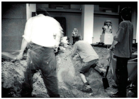 Goldsworthy’s Sandwork was part of the exhibition Time Machine, a major installation of contemporary art placed alongside the British Museum’s Egyptian antiquities (Putnam and Davies 1994). It was installed at the vanguard of a trend that saw museums of all types inviting artists into their galleries in the 1990s. Such activities are frequently accompanied by overtures that the ancient and the modern are in dialogue. However, the vast majority of exhibitions juxtaposing the ancient and the modern focus only on artists’ engagements with the past (e.g., Ferrari and Hinson 2022; Herzer et al. 1986; Humbert et al. 1994). For Egyptology, the interpretive function of contemporary art in this context is to act as a departure point for the performance of pre-existing Egyptological knowledge, concentrating on the inspiration behind the art rather than how that art might fundamentally question the way in which ancient Egypt might be seen or understood.
