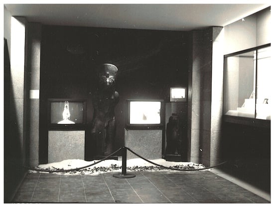 In Europe, such engagements are more limited in number and more recent in curation, as in Italy and France (e.g., Avanzo and Mimmo 2014; Putnam 1995), and in Egypt there has only been a single such example of a contemporary art intervention: Art d’Egypt’s four days at the Egyptian Museum in 2017 (Elnozahy 2021). As noted in a more detailed study (Stevenson, forthcoming), it is primarily in Germany that Egyptian collections have seen sustained engagement with contemporary art (e.g., Förster 2017a, 2017b). Here, under the influence of Dietrich Wildung and Sylvia Schoske, the philosophy ‘art for art sake’ has underpinned numerous experiments in Munich’s Staatliches Museum Ägyptischer Kunst and Berlin’s Neuse Museum (e.g., Schoske and Wildung 2020). Most of these have constituted what might be better described as insertions rather than interventions or institutional critique as they have usually comprised pre-existing works brought into the museum, sometimes to resonate with general themes, but more rarely based on research into the collection or to challenge narratives. For many of these museums, the purpose of bringing in artists is to enliven more traditional modes of display, improve their relevance to modern societies, and expand their audiences (Putnam 2009, p. 202; Black et al. 2020). For others, artists’ work ‘remediates’ and ‘recharges’ collections with contemporary meaning, allowing forms of experiment with ways of describing and displaying well-known collections (e.g., Deliss 2015). These are all valid motivations, albeit contested as they are not always effective. For some, interventions can become superficial acts of museum self-promotion or else a tokenistic performance of criticality when there is no longer term legacy (e.g., Kwon 2002, p. 47; Theuri 2021). Notwithstanding these concerns, might exhibitions potentially offer more than a rethinking of display and presentation? Could they alter interpretative approaches and perceptions of the subject matter itself?