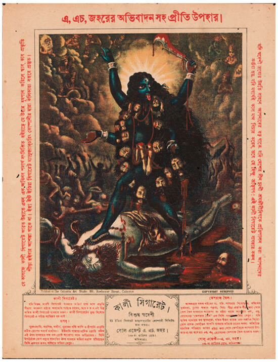 Kali Lithograph, 1885–95, lithograph, 17 × 13 in. (43 × 33 cm). The Metropolitan Museum of Art. Image provided by the museum. Purchase, Anonymous Gift, 2013, https://www.metmuseum.org/art/collection/search/78257 (accessed on 6 March 2024).
